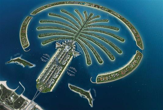 The Palm Jumeirah which looks like a stylized palm tree from above lies in the emerald waters of the Arabian Gulf. These series….